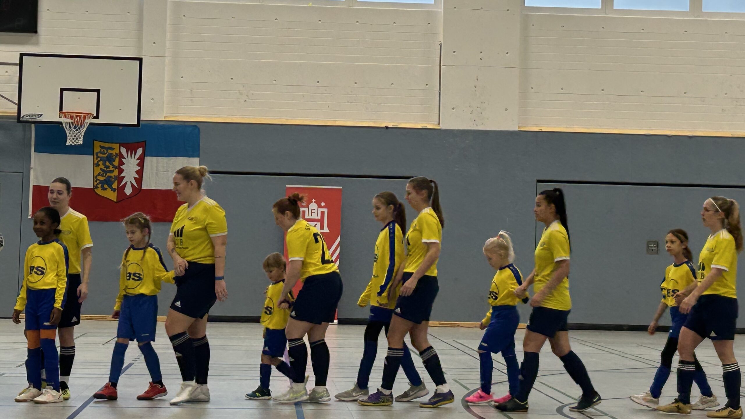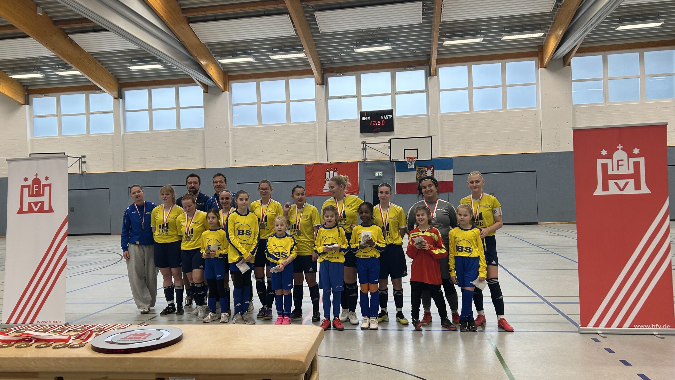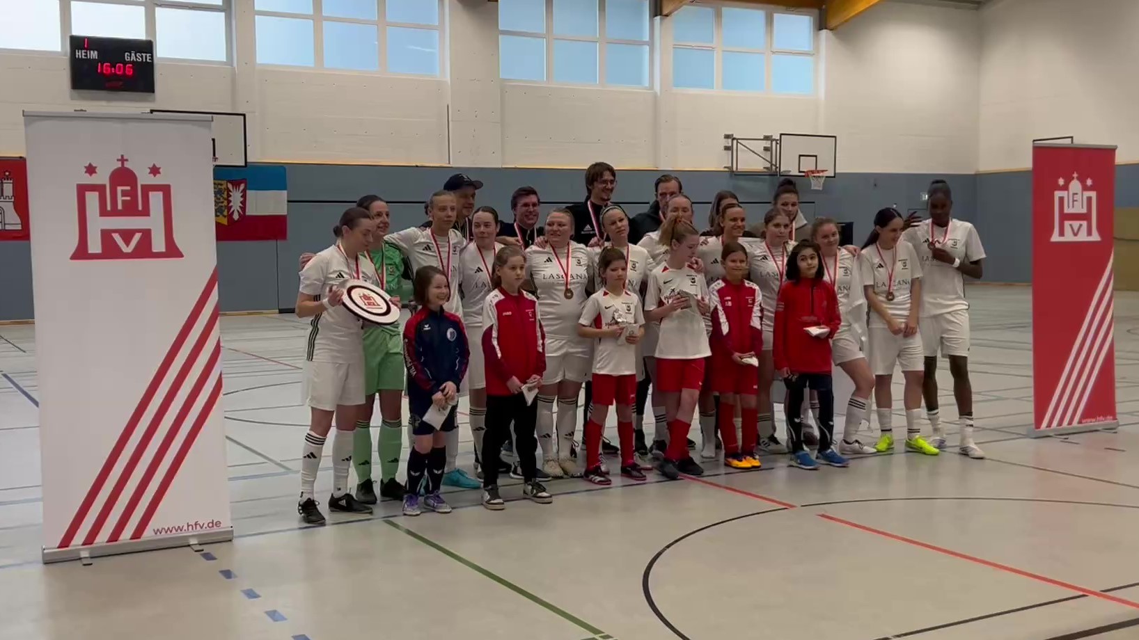 HfV organisierte Rahmenprogramm trug dazu bei, dass es für alle Beteiligten ein unvergesslicher Tag wurde. Beide Vereine der Finalisten stellten Einlaufkinder aus ihren E- und F-Mädchenmannschaften. Die 6-10-järigen Mädchen staunten über die souveräne fußballerische Leistung im Finale und brachten zudem noch viel Stimmung in die Halle. In der Halbzeitpause zeigten die jungen Fußballerinnen, dass in beiden Vereinen auch der Nachwuchs kickt. Am Ende gab es für die Kinder noch eine kleine Aufmerksamkeit und das ein oder andere Einlaufmädchen konnte sogar noch eine Medaille der großen Vorbilder abstauben.